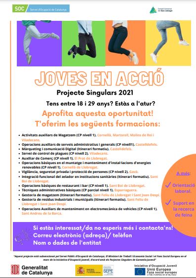 Aquest projecte té com a objecte principal la millora de l’ocupabilitat de les persones joves participants, mitjançant la realització d’un curs de formació professionalitzadora en diferents àmbits i la participació en un itinerari d’orientació on tindran una persona tutora de referència, encarregada de realitzar l’acompanyament i el seguiment d’aquesta orientació laboral.